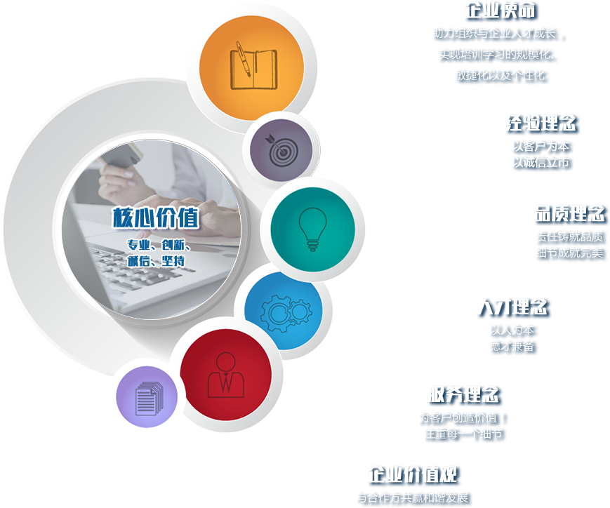 “为客户创造价值!注重每一个细节!”是我们的服务理念。专业、创新、 诚信、坚持,我们挖掘客户所需,解决客户所扰,用我们的专业精神为企业人 才培训提供更优质的服务。