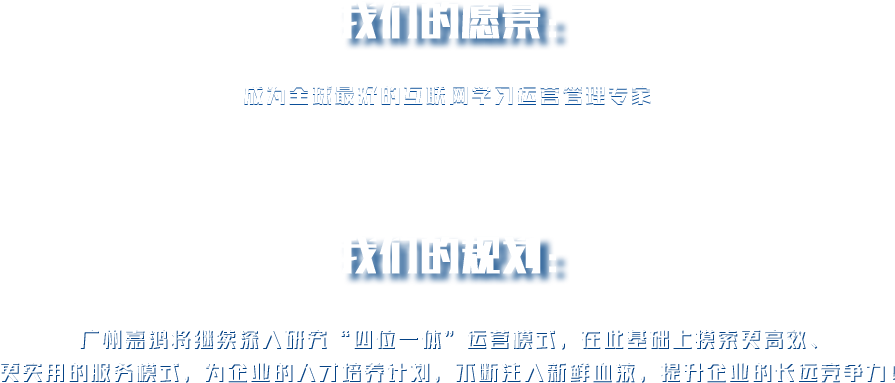 广州嘉鸿从成立之初就着眼于互联网学习,经过十多年的不断发展,现已建 立能力测评、知识体系、平台工具以及学习运营四位一体的综合互联网学习运营 模型。广州嘉鸿致力于为企业提供全方位人才培养方案,打造互联网时代的培训 学习新模式,建立快速、便捷、轻松、快乐的互联网学习氛围,帮助企业打造互 联网时代的创新、高效的人才体系。